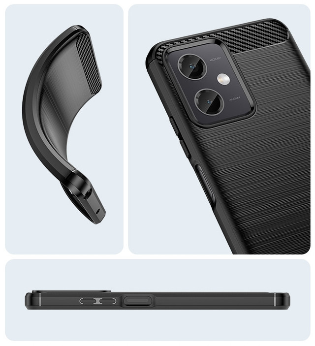Чорний матовий чохол забезпечує чудовий захист і сучасний зовнішній вигляд. Головною особливістю цього чохла є стильні "карбонові" вставки, які трохи розбавляють його строгі контури. Завдяки тому, що товщина термопластичного поліуретану становить усього 1,5 мм, чохол практично не потовщує смартфон. Фактично це найтонший варіант із протиударних чохлів. Чохол закриває всі торці смартфона, забезпечуючи максимальний захист. Виступні бортики оберігають скло смартфона, якщо його покласти екраном вниз. Чохол-накладка легко знімається й одягається, має всі необхідні технологічні отвори.